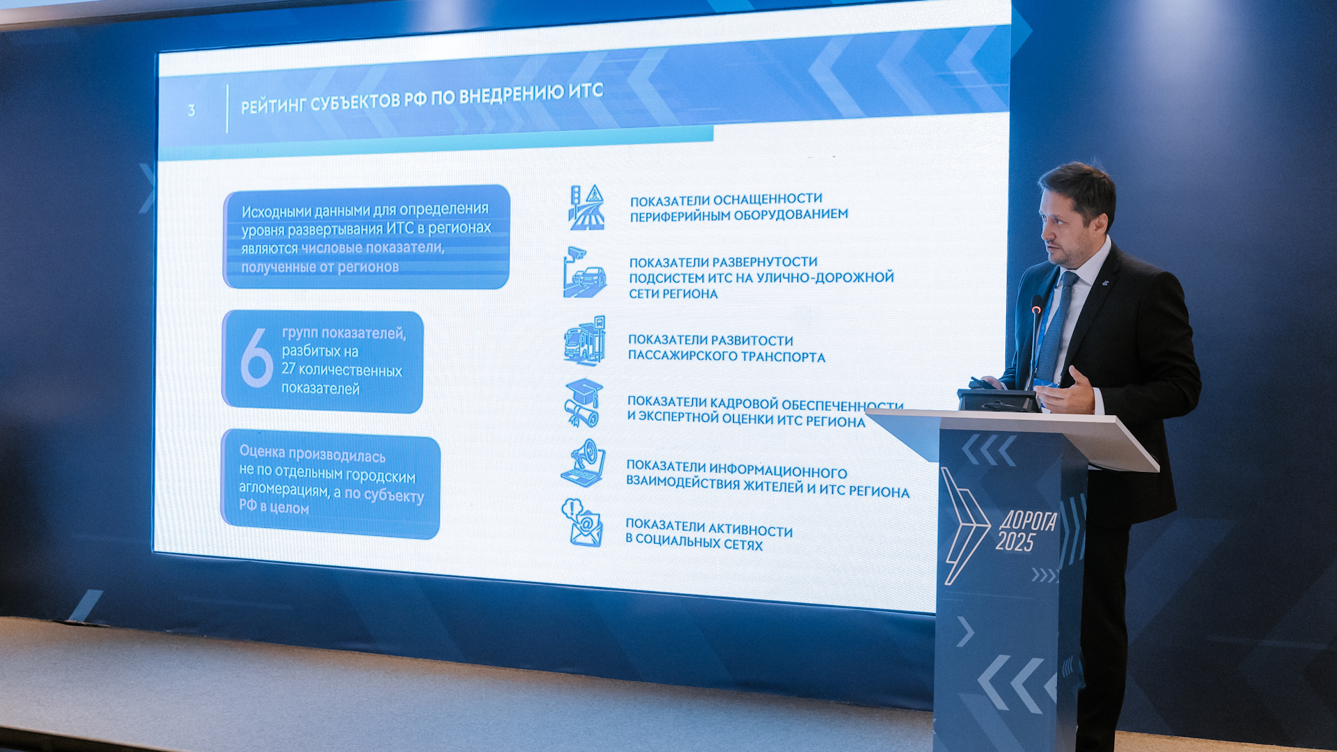 Исполнительный директор Ассоциации «Цифровая Эра Транспорта» Дмитрий Ольховиков рассказал о независимом рейтинге по внедрению ИТС в Российской Федерации. В стране на данный момент функционирует более 150 тыс. ед. оборудования в 64 городских агломерациях в 56 субъектах РФ, при этом видны осязаемые эффекты от внедрения ИТС: выросла интенсивность транспортного потока и минимизируются задержки в части грузоперевозок.