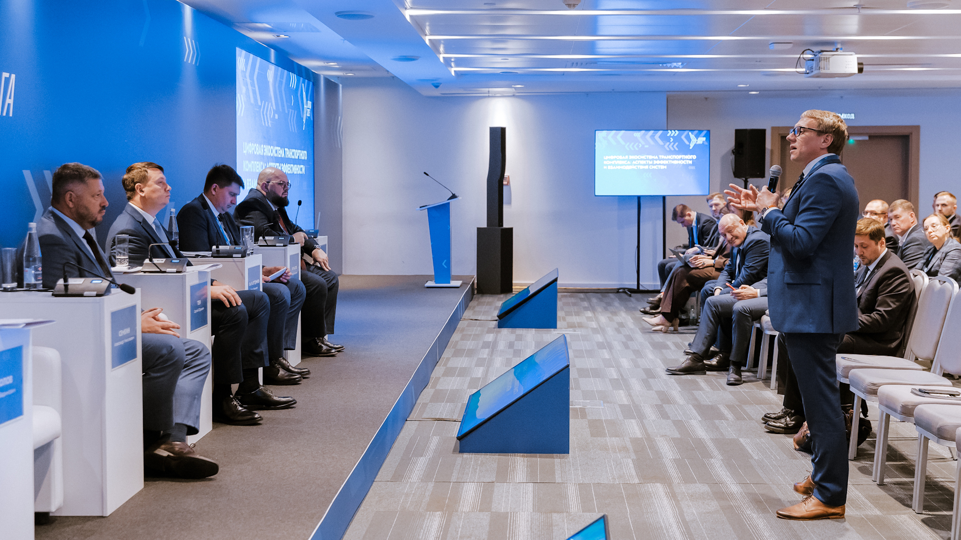 В Минеральных Водах в первый день деловой программы XII Международной специализированной выставки «Дорога 2025» состоялся круглый стол «Цифровая экосистема дорожной отрасли: аспекты эффективности и взаимодействия систем». Модератором выступил начальник Управления регионального развития и реализации национального проекта Росавтодора Радик Фаразутдинов, а сомодератором стал президент Ассоциации «Цифровая Эра Транспорта» Александр Сёмкин.