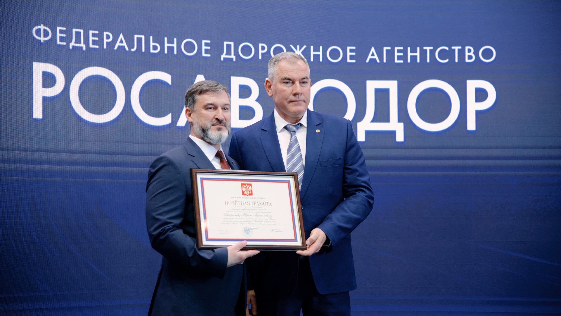 Руководитель Федерального дорожного агентства отметил усердный труд и слаженную работу всех отраслевых специалистов, а также пожелал им дальнейших успехов в профессиональной деятельности.