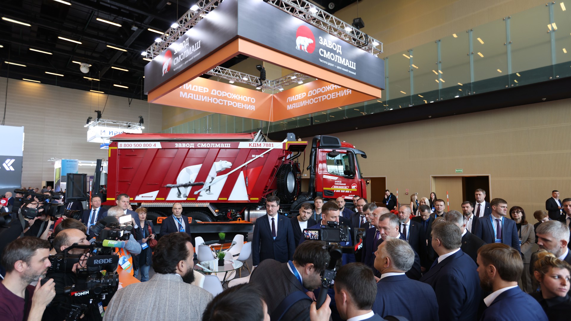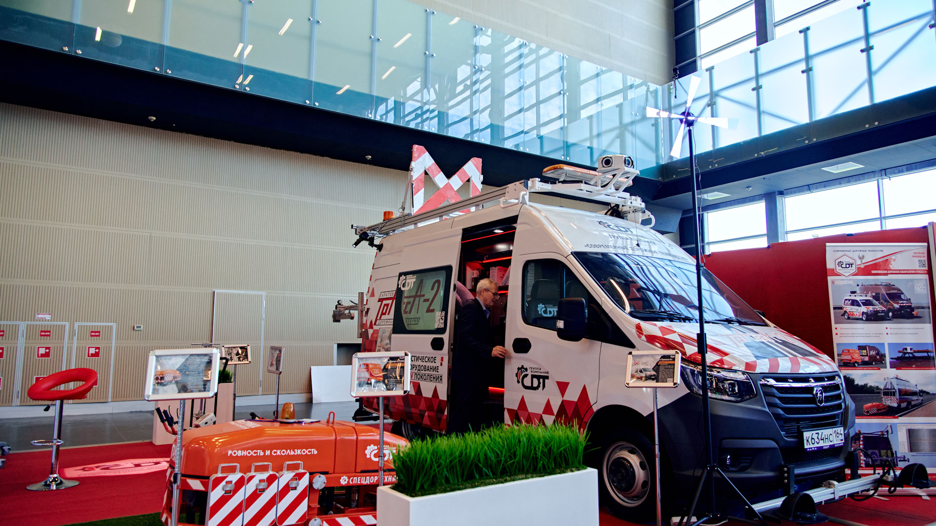 А на открытой площадке развернулась выставка техники и оборудования. В этом году большое внимание было уделено беспилотным системам и цифровым технологиям в строительстве. В частности, на площадке были представлены многофункциональные дорожные машины, беспилотные комплексы для мониторинга дорожной инфраструктуры с воздуха, инновационное оборудование для ремонта и содержания автодорог, включая «умную» мобильную смесительную установку. На открытой площадке разместилось около трех десятков экспонатов, на которых стоит знак «Сделано в России».